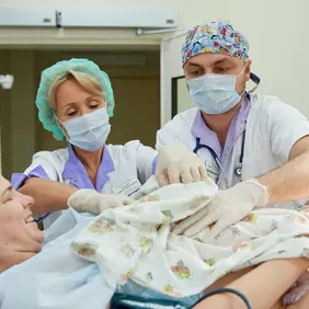 У нас Вы можете воспользоваться услугой «партнерские роды», когда супруг присутствует в процессе и помогает жене. Женщинам для облегчения состояния применяют эпидуральную анестезию, позволяющую находиться в сознании как в процессе естественных родов, так и при кесаревом сечении.
